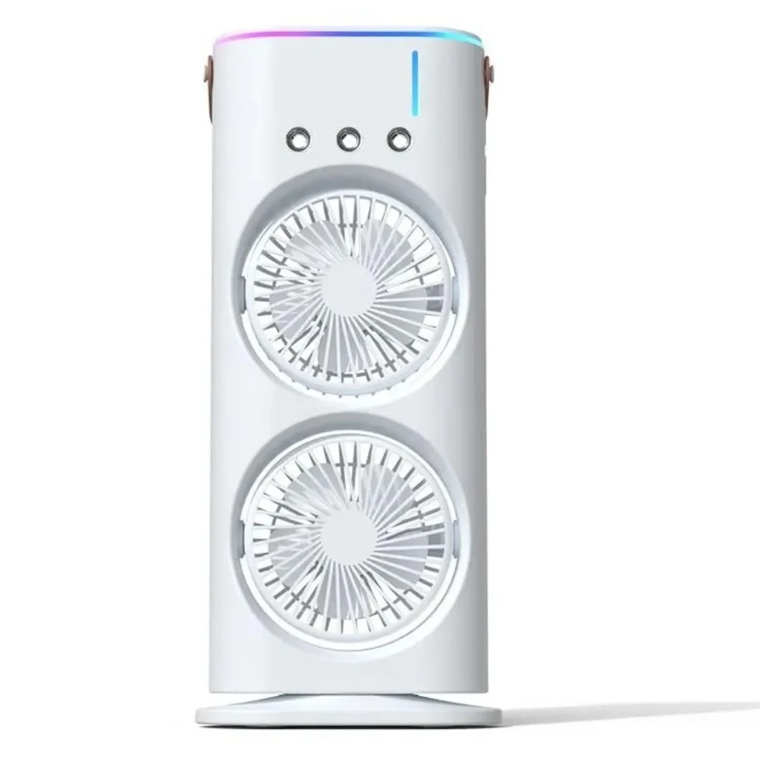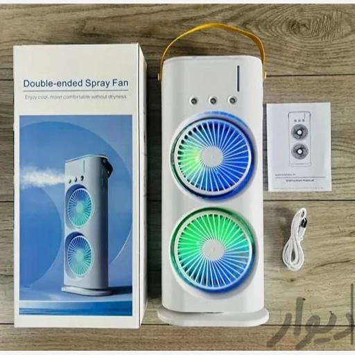 شارژی ، حدود 1ساعت تا 3ساعت بسته به کار کرد دستگاه ،استفاده از مه پاش و سرعت کم و زیاد ،چراغ و..